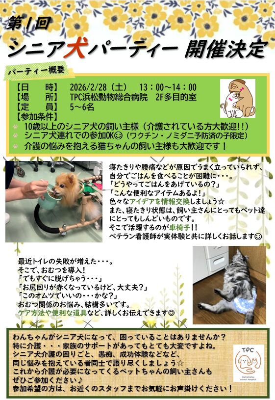 先日、シニア犬の飼い主様を対象にした「シニア犬パーティー」を開催しました!